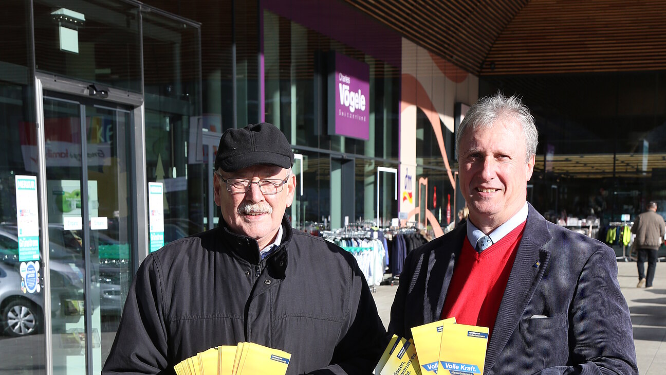 Verteilaktion anläßlich Halbzeitbilanz im Bezirk Bruck
